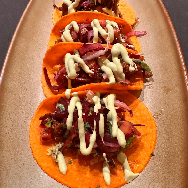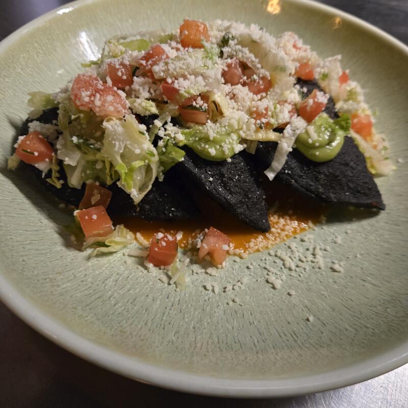 squid ink masa, seasonal fish, chipotle sofrito, salsa roja, iceberg lettuce, avocado salsa, cotija cheese